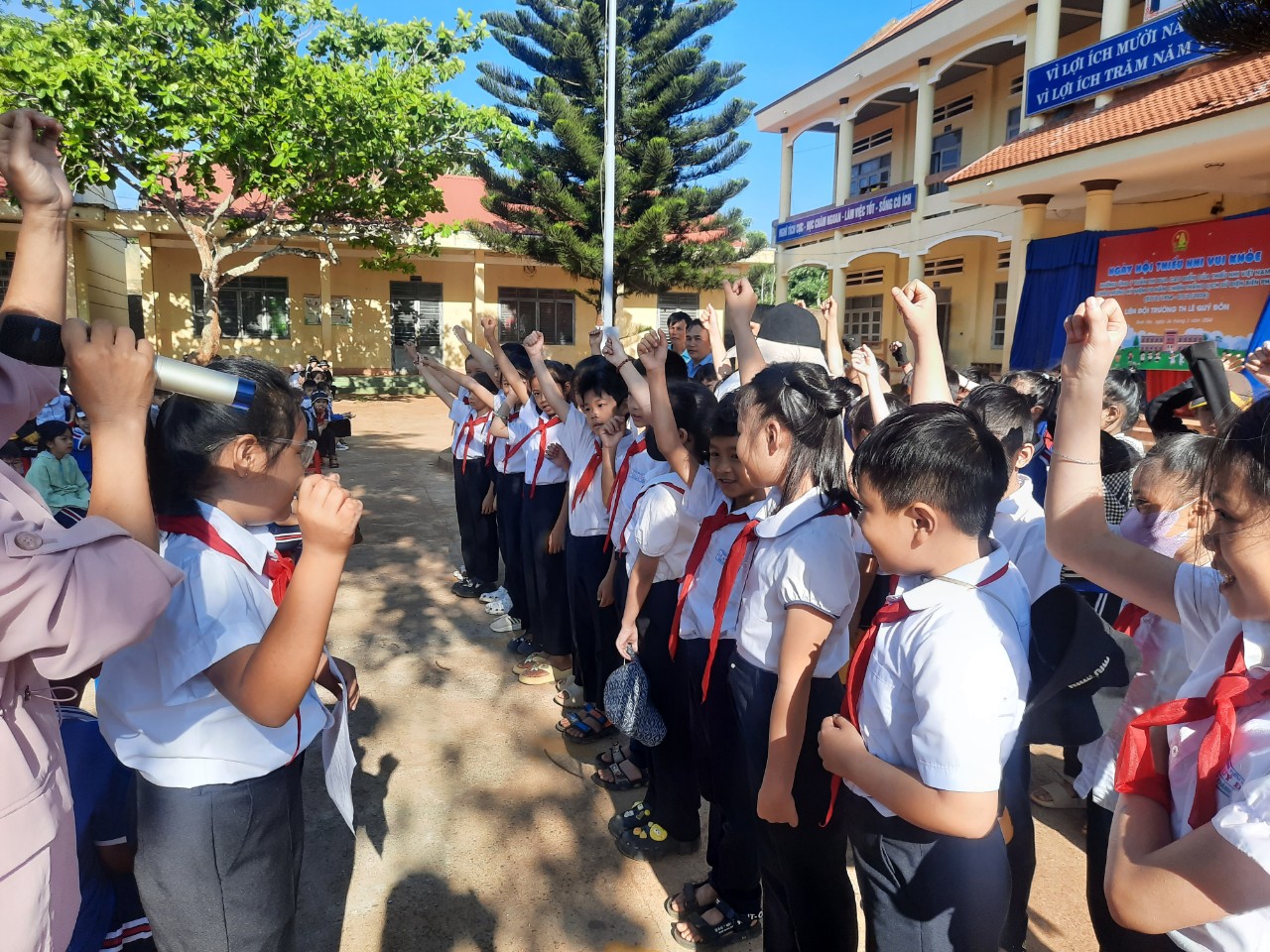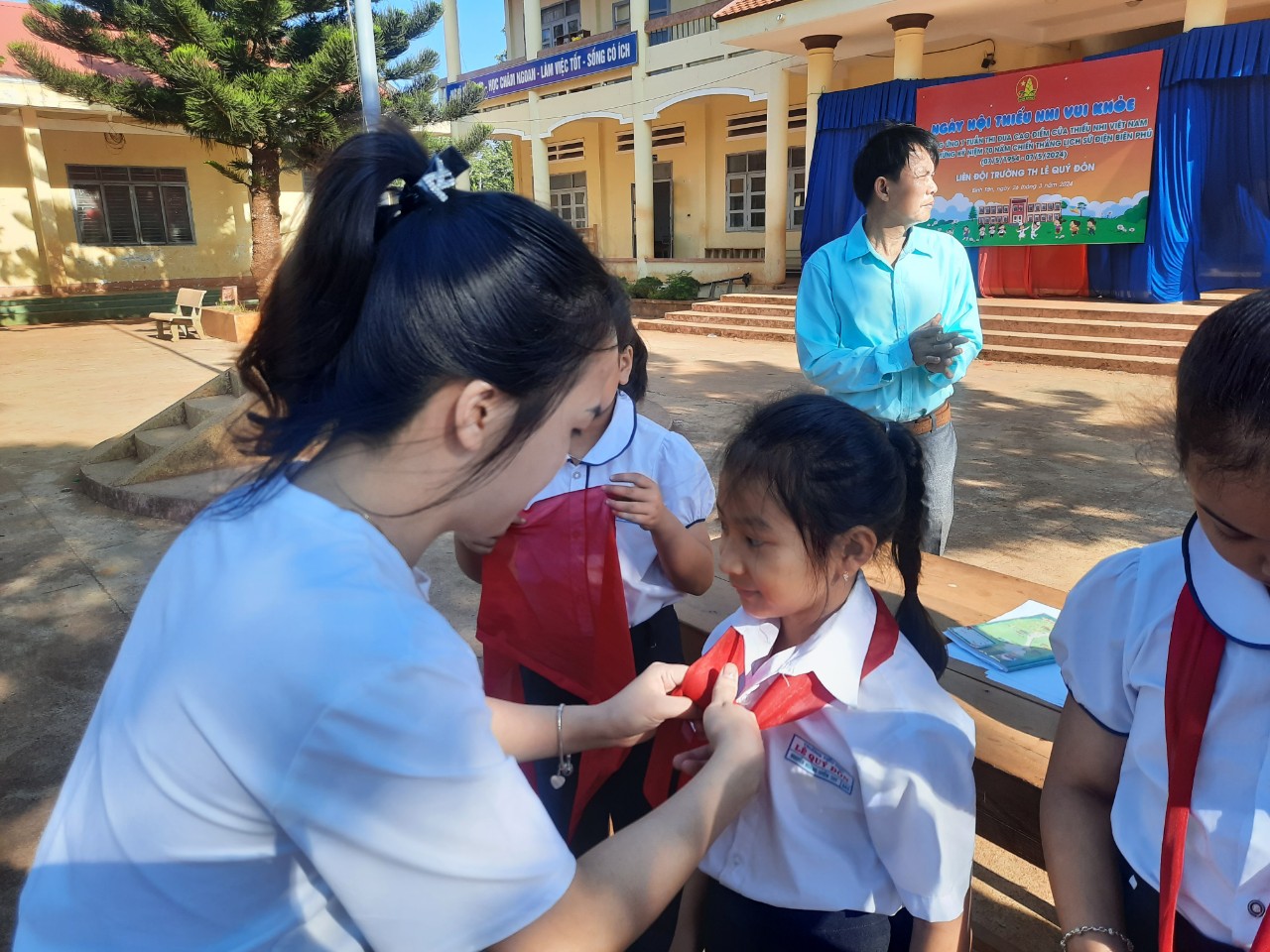 Nhân dịp này, kết nạp đội cho các em học sinh khối lớp 3, tặng quà tiếp sức đường dài cho những em học sinh có hoàn cảnh khó khăn, tổ chức các trò chơi dân gian như: kéo co, chuyền bóng.